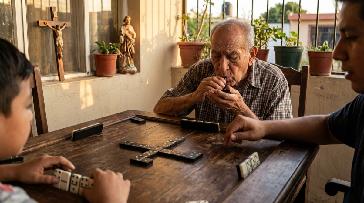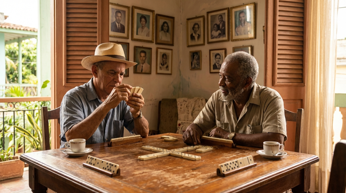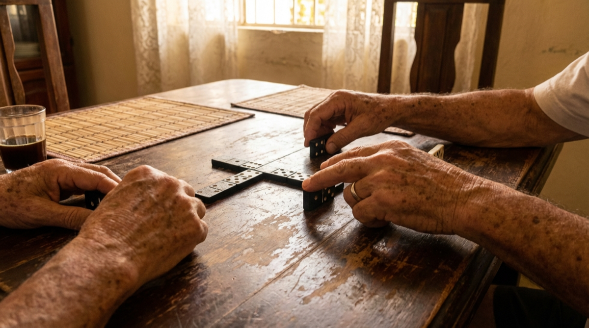 La primera vez que mi abuelo me ganó sin mirarme a los ojos, entendí que el dominó no era un juego de suerte. Tenía las fichas contadas. Sabía exactamente qué yo podía tener — y jugó en consecuenc