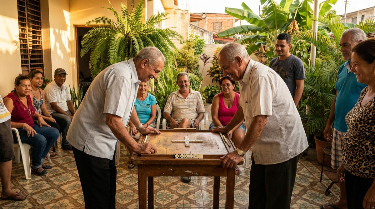 Hay un momento que todo venezolano reconoce. El sonido de las fichas sobre la mesa — ese golpe seco, casi ritual — seguido de un silencio breve antes del siguiente movimiento. No importa si estás