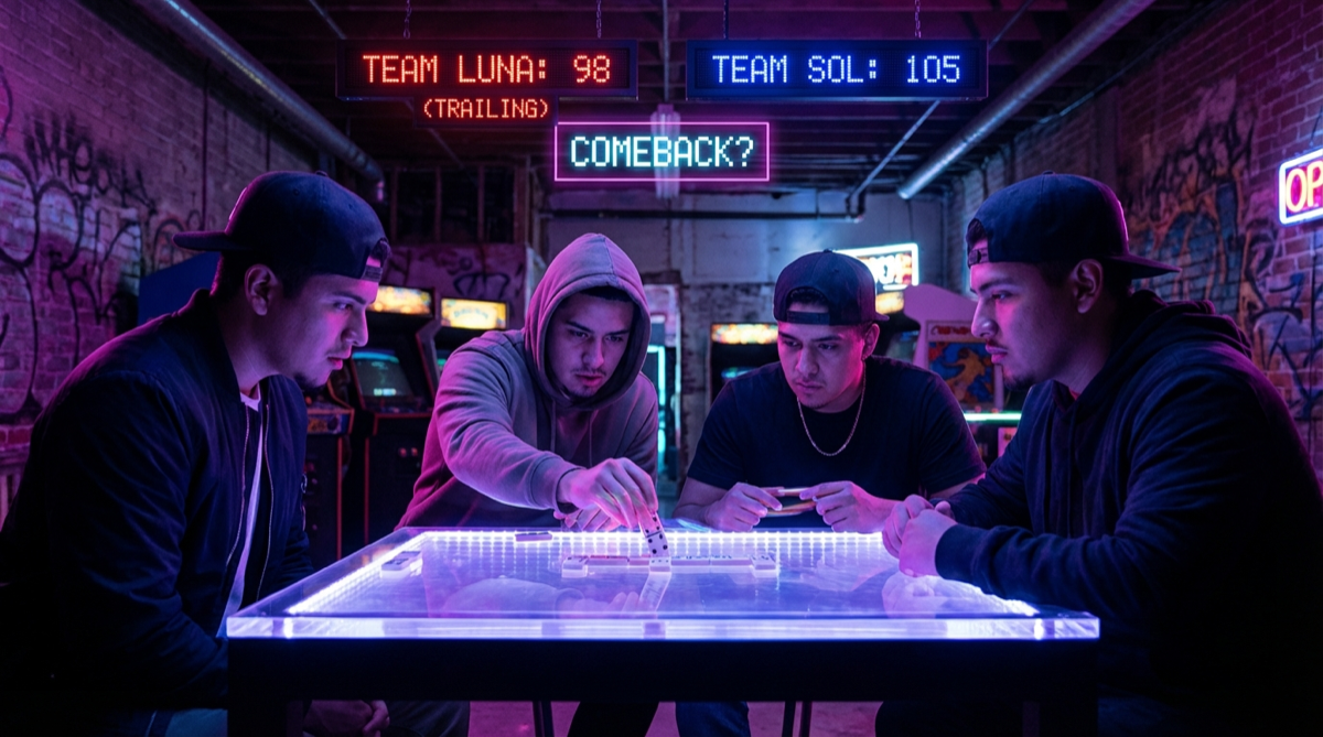 Hay un momento en cada partida de dominó en pareja que se siente casi ceremonial. Alguien voltea el doble-seis. O el doble-cinco. O — y aquí empieza el drama — no hay ningún doble y hay que decidi
